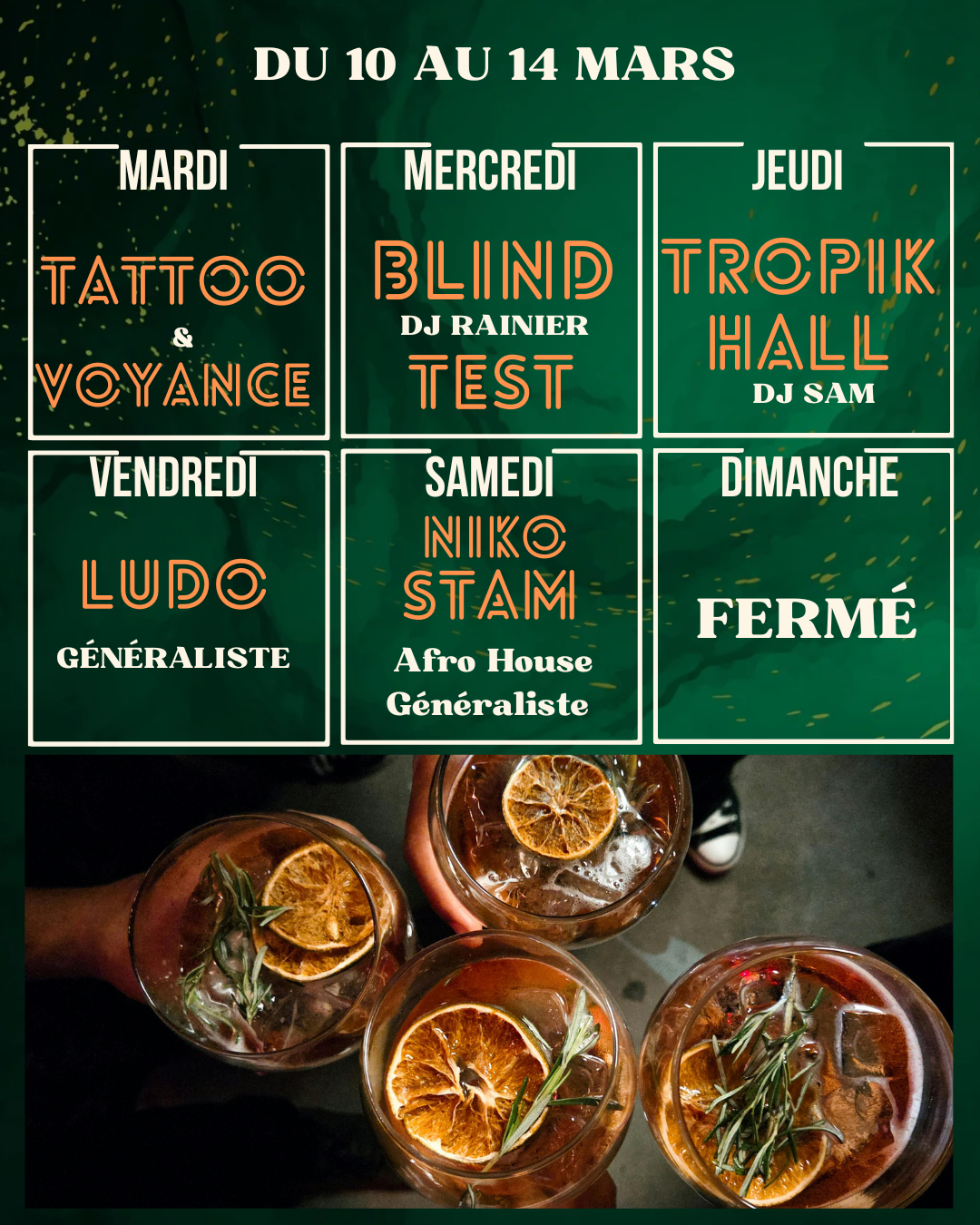 À partir de 20h, Nos DJ promettent d'enflammer progressivement le dancefloor! Apogée garantie avant 22H et jusqu'à 1h15 le week-end